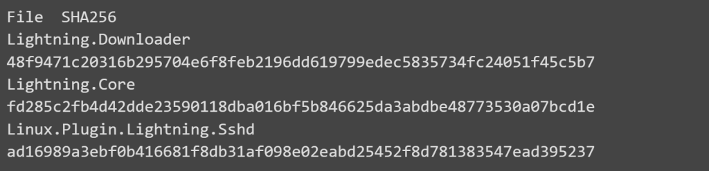 On infiltrated Linux machines, Lightning Framework will download and install all of the malware’s other modules and plugins, including its core module. This is accomplished via the use of a downloader component that is developed using a straightforward construction method.