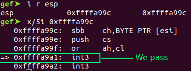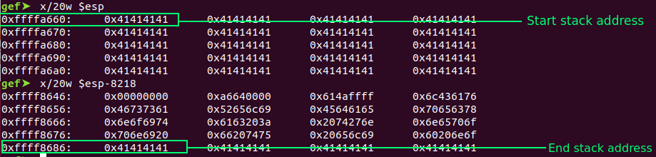 Before calculating the offset, we know the location of the buffer variable is at “ 0xffffa660”, but we need to know where the “start of the ESP” is or “where the end of ESP” is.