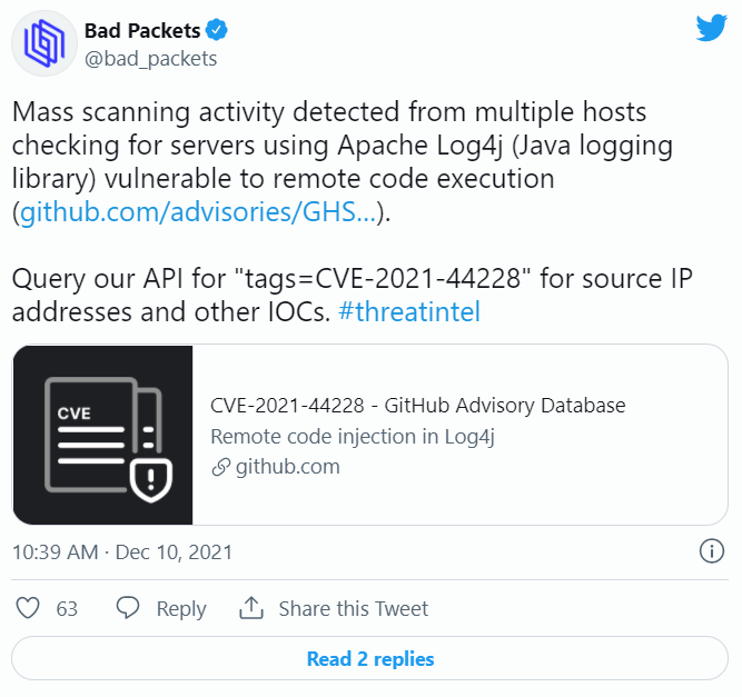 Versiunile Log4j mai vechi de 2.15.0 fac obiectul unei vulnerabilități de tip “Remote code execution” prin intermediul funcționalității ldap JNDI.  Vulnerabilitatea este clasificată sub identificatorul CVE-2021-44228.